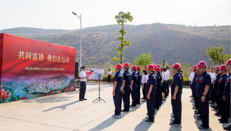 4月26日,集團公司攀西水工程有限公司黨支部,在馬店河水廠光伏發電項目建設現場組織開展了“共同富裕 我們在行動”主題黨日示范活動,凝聚拼經濟、搞建設、抓項目、促發展的信心和力量,以更加飽滿的精神狀態,為我市“共同富裕”試驗區建設貢獻力量。
