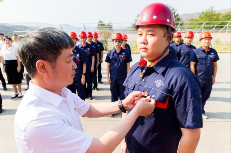 “恭喜你成為一名預備黨員,希望你再接再厲,干好本職工作,時刻以共產黨員的標準嚴格要求自己,在本職工作中發揮好先鋒模范作用”。攀西水工程公司黨支部書記郭家泉為新黨員況青泉佩戴黨徽,鞭策新黨員不忘初心、牢記使命,自覺履行黨員義務,聽黨話、感黨恩、跟黨走,全心全意為人民服務,矢志不渝為黨奮斗。