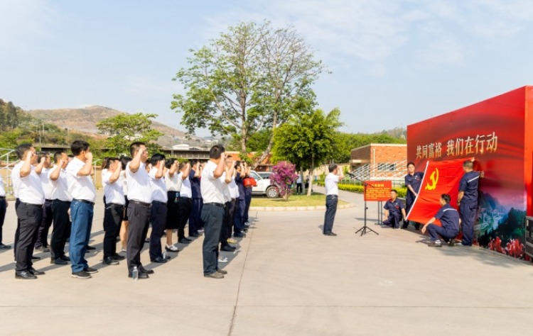 現場參觀結束后,舉行“重溫入黨誓詞”活動,全體黨員鏗鏘有力的宣誓聲響徹全場,大家以昂揚的姿態表達著為黨的事業奮斗終身的堅定信念,在莊嚴肅穆的氛圍中,再一次接受心靈的洗禮。