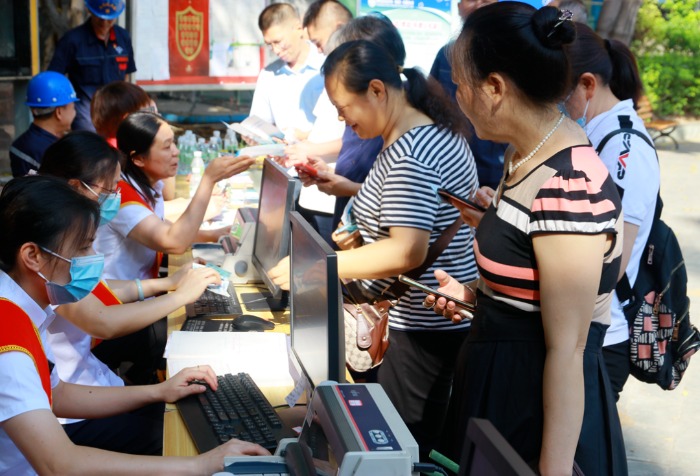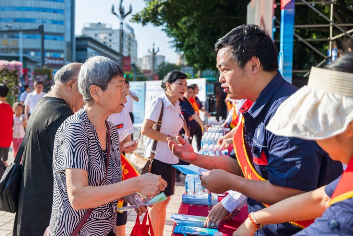 上午8時,設置在竹湖園廣場的“520”便民服務點,熱鬧不已,炳草崗水廠、怡康飲用水有限公司共產黨員服務隊、青年志愿者服務隊的隊員們,禮貌熱情地向群眾介紹集團公司“520”服務品牌建設理念,發放“520”民生服務承諾、現行水價政策、用水節水常識等宣傳資料,對群眾關心的水質、水壓、抄表、收費等問題進行耐心細致的逐一解答。