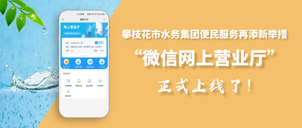 新年伊始,攀枝花市水務集團便民服務再添新舉措,“微信營業廳”(以下簡稱“微網廳”)正式開通運行,用戶只需關注二維碼,動動手指就可以在“微信營業廳”辦理水費繳納、用水報裝、更名過戶、信息查詢等各項用水業務,為您提供更加專業、高效的優質服務,實現辦事“免跑腿”、溝通“零距離”。下面,跟隨小編一起去看看“微網廳”的操作流程吧!